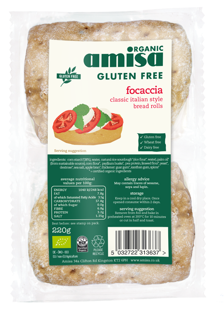 Amisa Organic Gluten Free Focaccia Rolls 220g